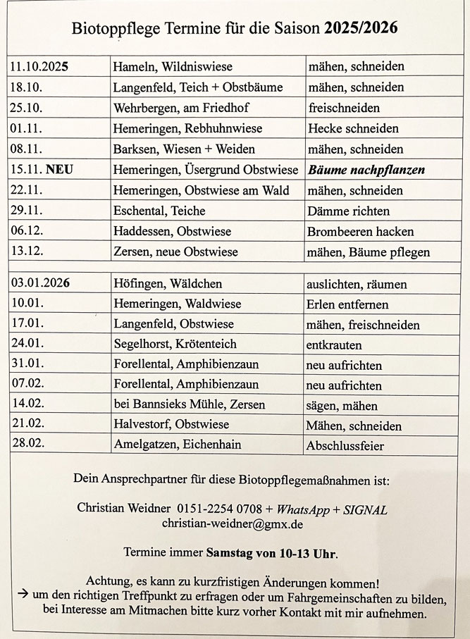 Hier die Liste der Termine für den Herbst und Winter 2025/2026.